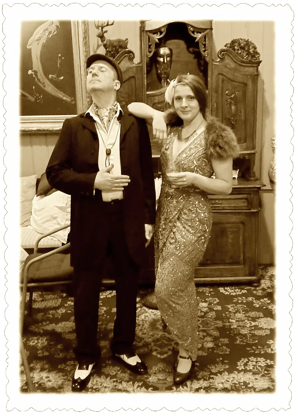 Neben konzertanten Veranstaltungen bringen wir Ihre Partygäste zum Tanzen und Feiern! Wir entführen Sie in die “gute alte Zeit” der heißen Swingmusik: Schüttelt die Beine, schwingt eure Hüften - der Rhythmus der prickelnden “Roaring Twenties” ist zurück! Wir präsentieren legendäre Swing- und Filmschlager aus den 1920ern in einer frischen, mitreißenden Interpretation - also nicht altbacken und verstaubt, sondern fröhlich, beschwingt, bisweilen frech, frivol, anzüglich, aber stets niveauvoll und authentisch. Hören Sie den heißen Swing und Hotjazz ausgesuchter Spitzenmusiker, tanzen Sie zu wildem Charleston und Lindy Hop, lauschen Sie humorvollen Kabarettstückchen in charmanter Präsentation. Mit einst populären Gassenhauern, Swingschlagern und Tanzmusik unterhalten und entführen wir unser Publikum stilvoll in dieses faszinierende Zeitalter vergangener Tage, welches zudem herzlich zum Mitmachen und Mitsingen eingeladen ist. Folgen Sie uns auf eine wilde Zeitreise in die exzessiven 1920er voller Glanz und Glamour und lassen Sie sich mitreißen vom energiegeladenen Rhythmus dieser einzigartigen Zeit!